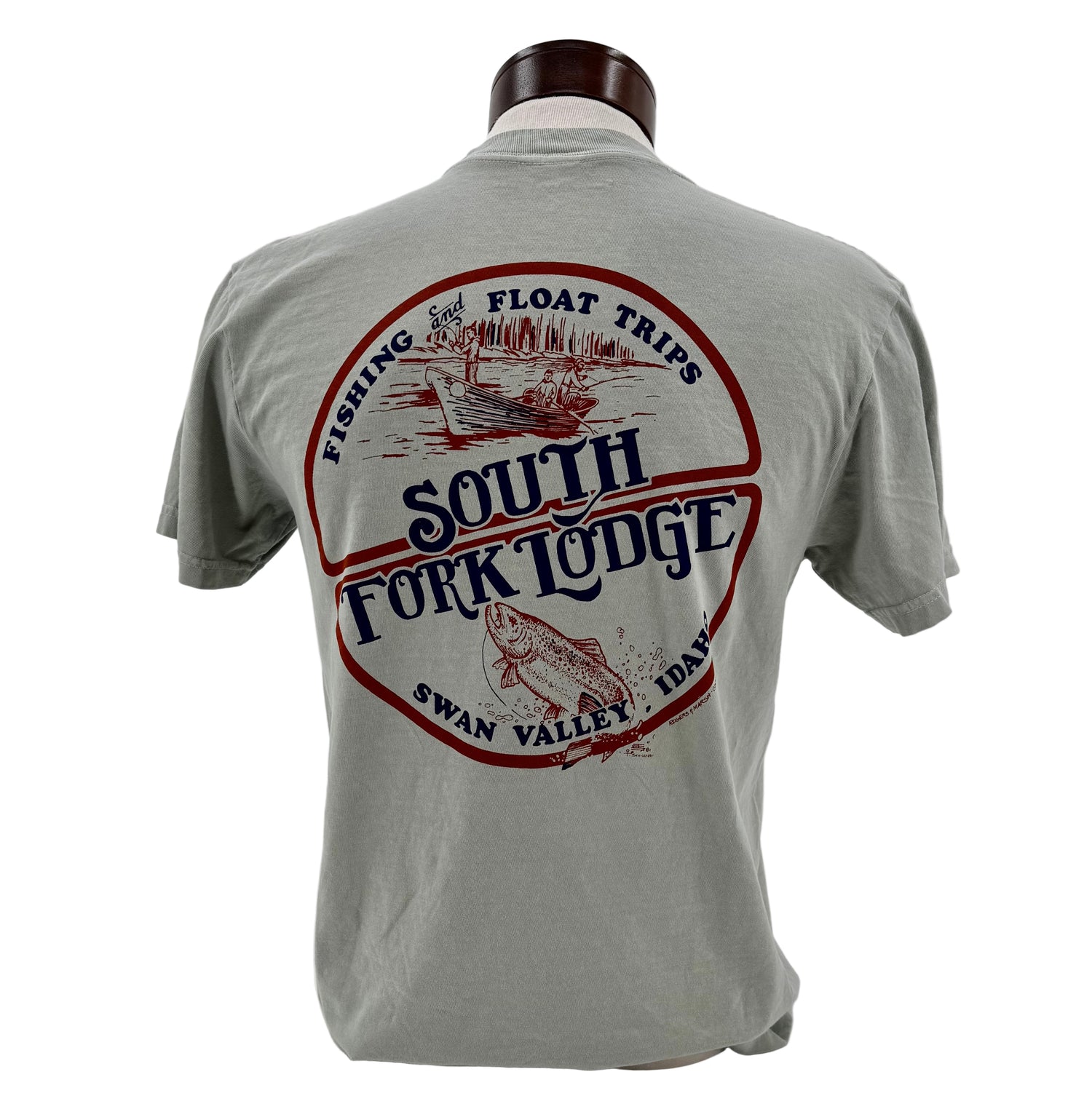 As anglers, we are all inspired by those who angled before us. This 100% Cotton Pocket T-Shirt pays homage to the rich history found at The South Fork Lodge. Recreated from vintage artwork, we can now enjoy one of the fishiest Pocket T-Shirts around. Come on, just look at that trout jumping out of that pocket.